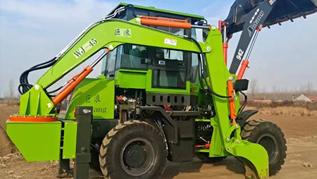 連接復合動作一拖二操作手柄,簡介易操作由于它具有共同的結(jié)構(gòu),前端是裝載設備,后端為發(fā)掘設備。在施工時,操作手只需求翻滾一下座椅,就可以結(jié)束從裝載機到發(fā)掘機的改動